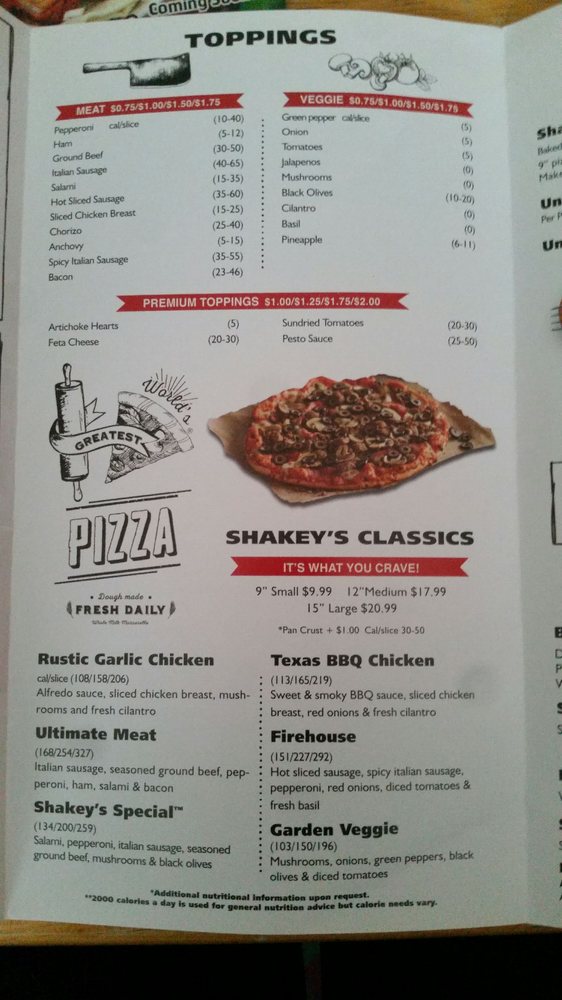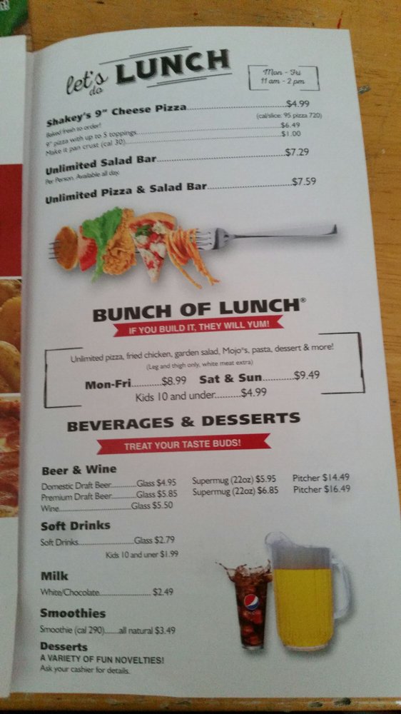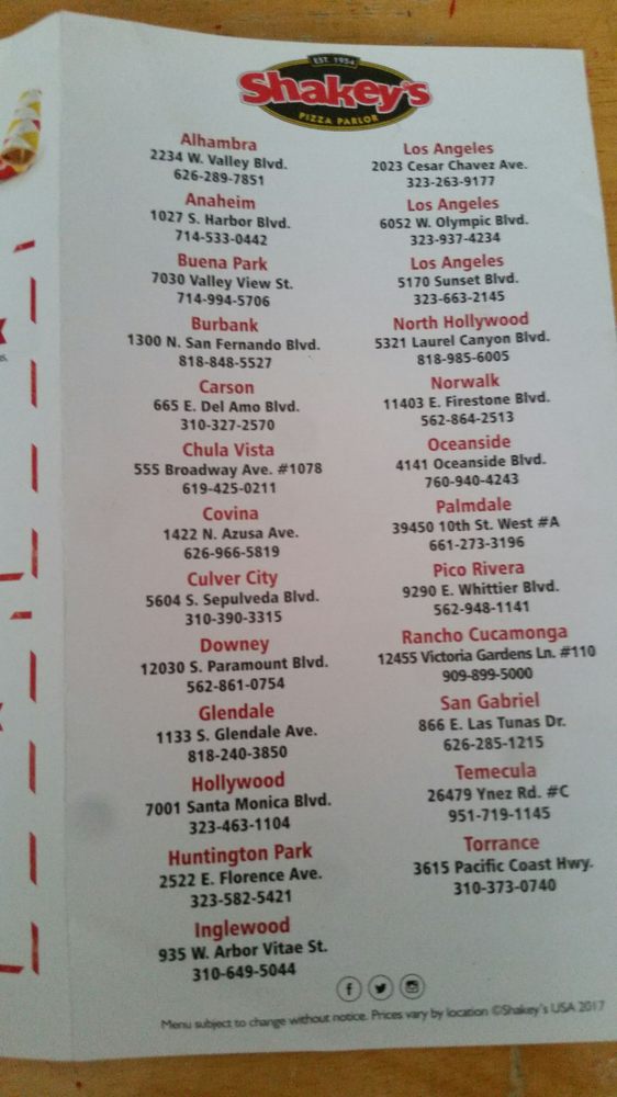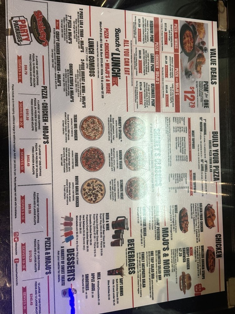 Shakey's Pizza Parlor - Del Amo Blvd Menu